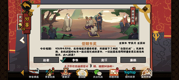 无悔华夏渔樵问答4月9日答案