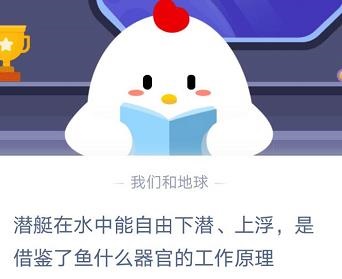 潜艇在水中能自由下潜上浮是借鉴了鱼什么器官的工作原理