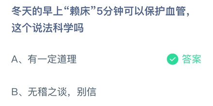 冬天的早上赖床5分钟可以保护血管蚂蚁庄园2月21日答案