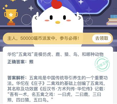 华佗五禽戏是模仿虎鹿猿鸟和那种动物