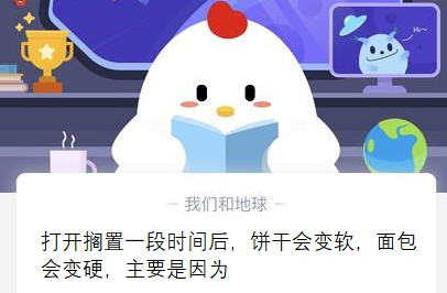 打开搁置一段时间后,饼干会变软,面包会变硬,主要是因为